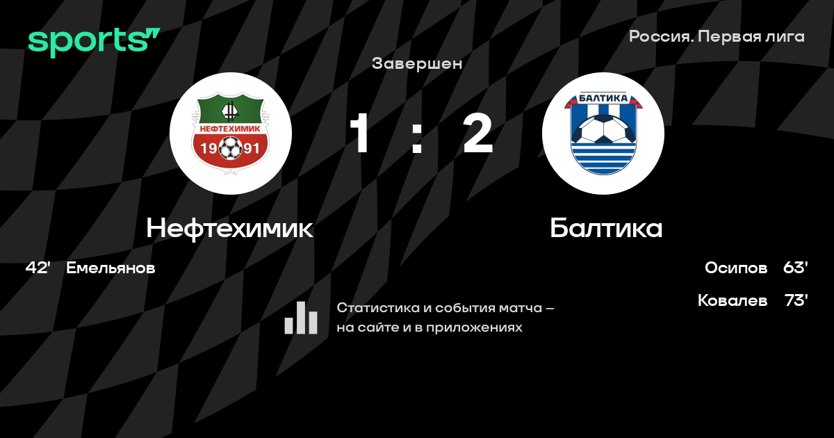 Результат прошлой игры в турнире «Первая лига»: Сочи – Нефтехимик 3:2. После 17 туров Нефтехимик набирает 22 очков и занимает 10 место в турнире. Лучший бомбардир команды – Максим Петров: он забил 3 в 18 матчах. Нефтехимик не может выиграть в 3 последних матчах в рамках турнира «Первая лига». Балтика имеет в активе больше всех побед в турнире – 9. В последних 5 играх Нефтехимик забивает 3 голов. В последних 5 играх Нефтехимик пропускает 3 голов.