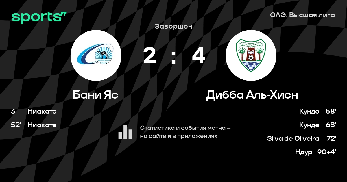 Бани Яс – Дибба Аль-Хисн: Бани Яс не проигрывает в 6 из 8 последних матчей против этого соперника