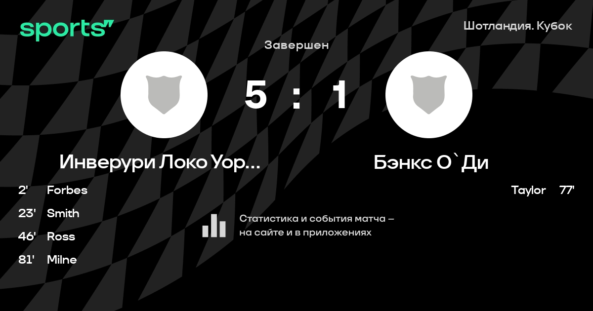 Инверури Локо Уоркс - Бэнкс О`Ди: статистика матча