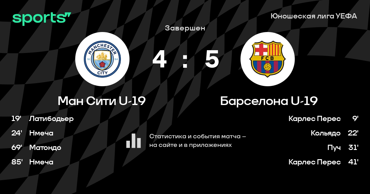 Трансляция Ман Сити U-19 - Барселона U-19