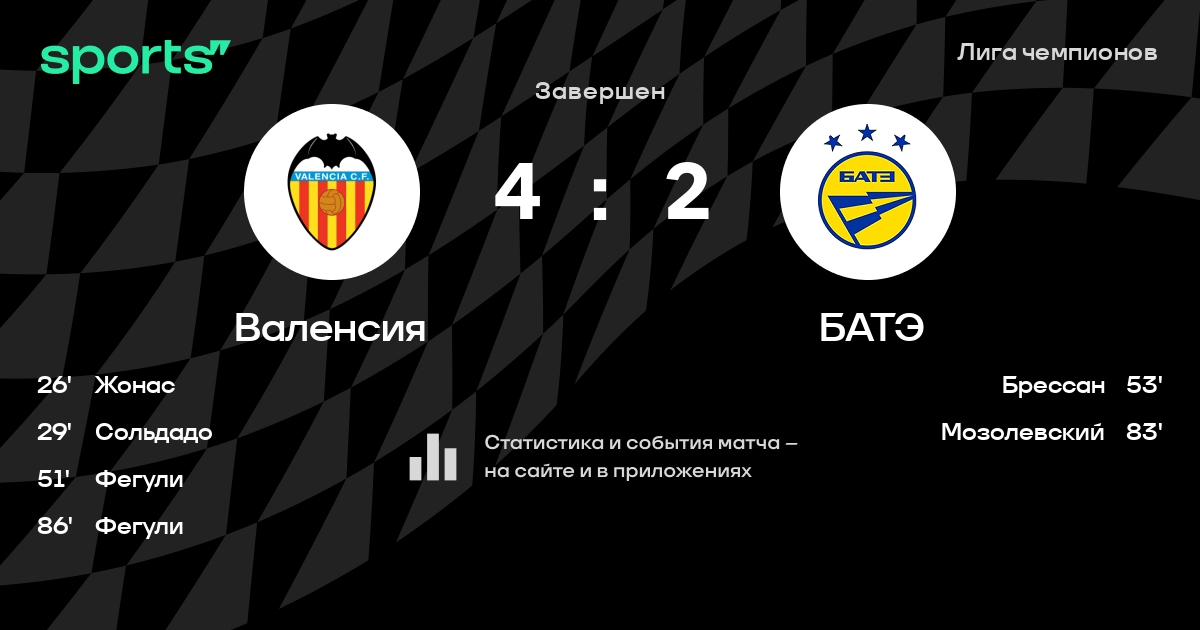 «Валенсия» – БАТЭ – 4:2. Дубль Фегули помог хозяевам победить