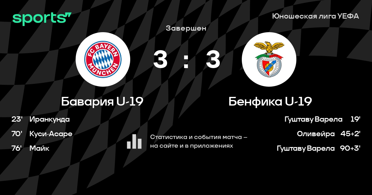 Бавария U-19 – Бенфика U-19: коэффициенты