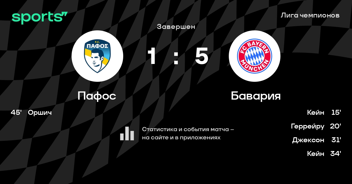 Лига чемпионов: шансы «Пафоса» и «Баварии» на победу в матче 2 тура