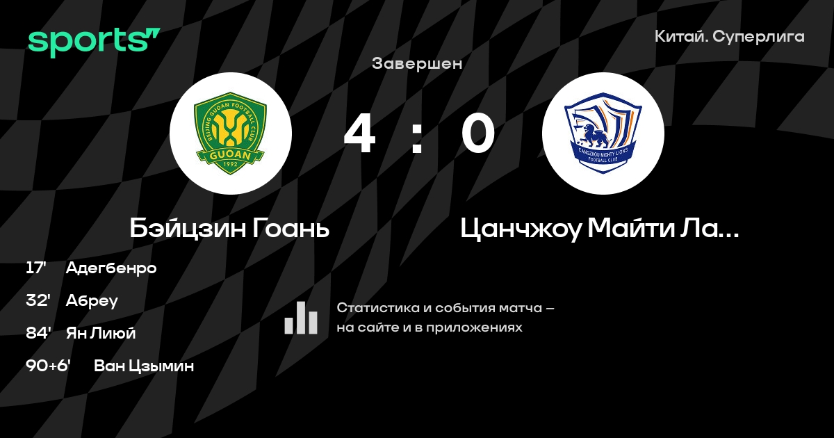 Бэйцзин Гоань – Цанчжоу Майти Лайонс: Бэйцзин Гоань забивает в 7 последних матчах против этого соперника