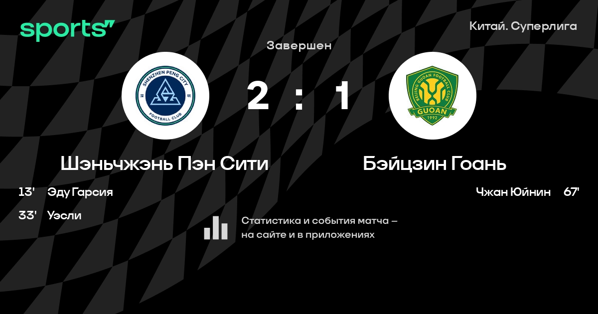 Шэньчжэнь Пэн Сити – Бэйцзин Гоань: Шэньчжэнь Пэн Сити забивает в 3 последних матчах против этого соперника