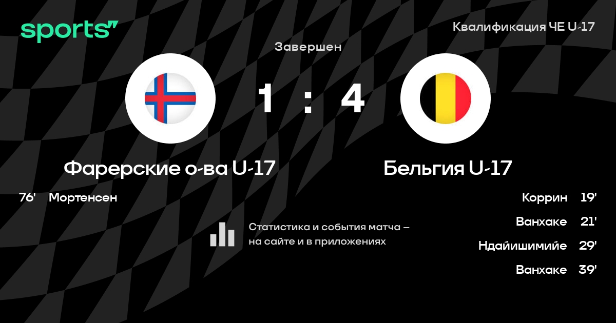 Фарерские о-ва U-17 - Бельгия U-17: положение в турнире
