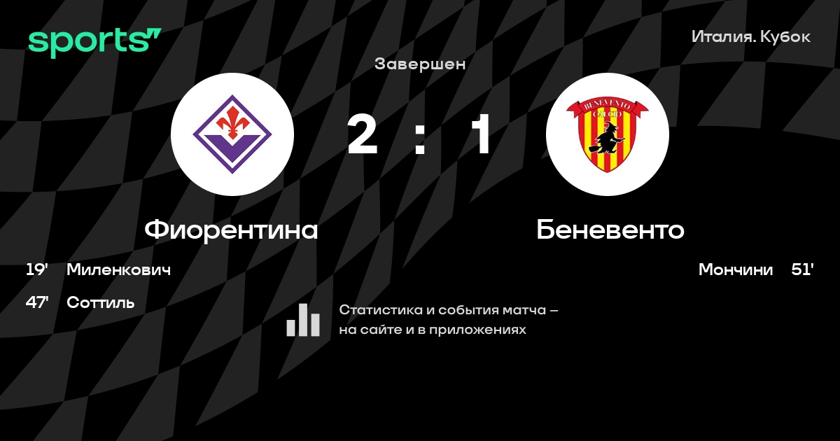 Розати - Терзич, Игор Жулио, Миленкович, Венути - Мале, Амрабат, Бенасси - Соттиль, Кокорин, КальехонЗапасные: Черофолини, Бираги, Мартинес Куарта, Одриосола, Бонавентура, Данкан, Пульгар, Торрейра, Бьянко, Гонсалес, Мунтяну, Влахович