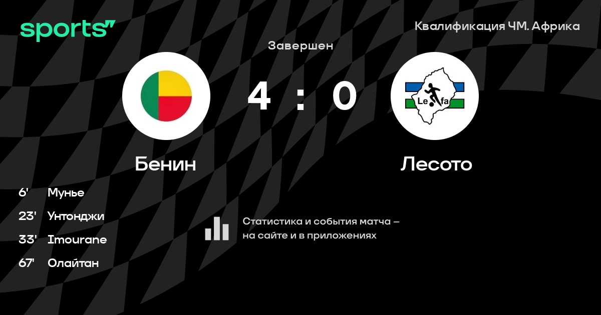Бенин – Лесото: Бенин не пропускает в 3 последних матчах против этого соперника