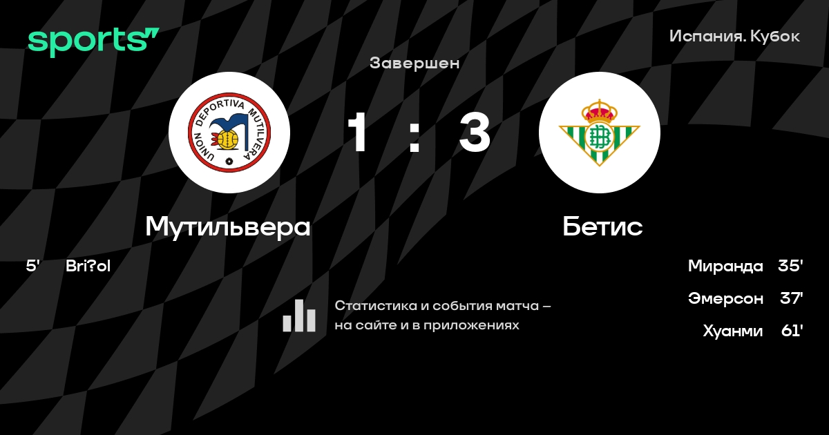 Роблес - Миранда, Сидней, Манди, Эмерсон - Акуоку, Гидо Родригес, Лайнес, Хуанми, Родри Санчес - ИглесиасЗапасные: Браво, Barba Jimenez, Кальдерон, Дельгадо, Руис, Фекир, Морон, Руибаль, Санабрия