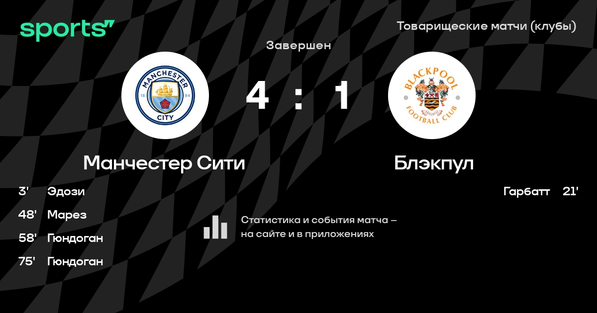 Манчестер Сити – Блэкпул: Манчестер Сити забивает в 7 из 9 последних матчей против этого соперника