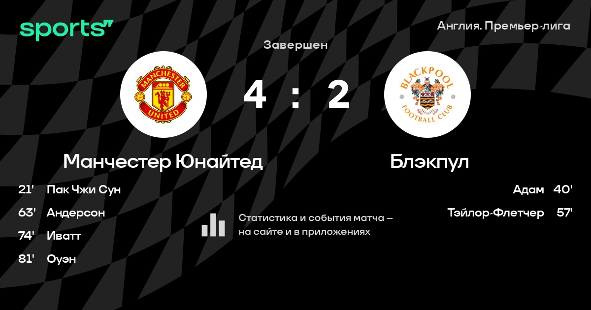 ван дер Сар - Рафаэл, Эвра, Эванс, Видич - Скоулз, Флетчер, Пак Чжи Сун, Андерсон - Нани, БербатовЗапасные: Линдегор, Фердинанд, Смоллинг, Валенсия, Гибсон, Оуэн