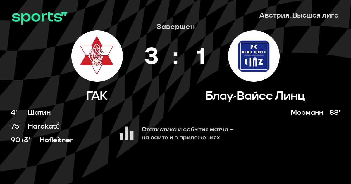 ГАК – Блау-Вайсс Линц: Блау-Вайсс Линц забивает в 5 последних матчах против этого соперника