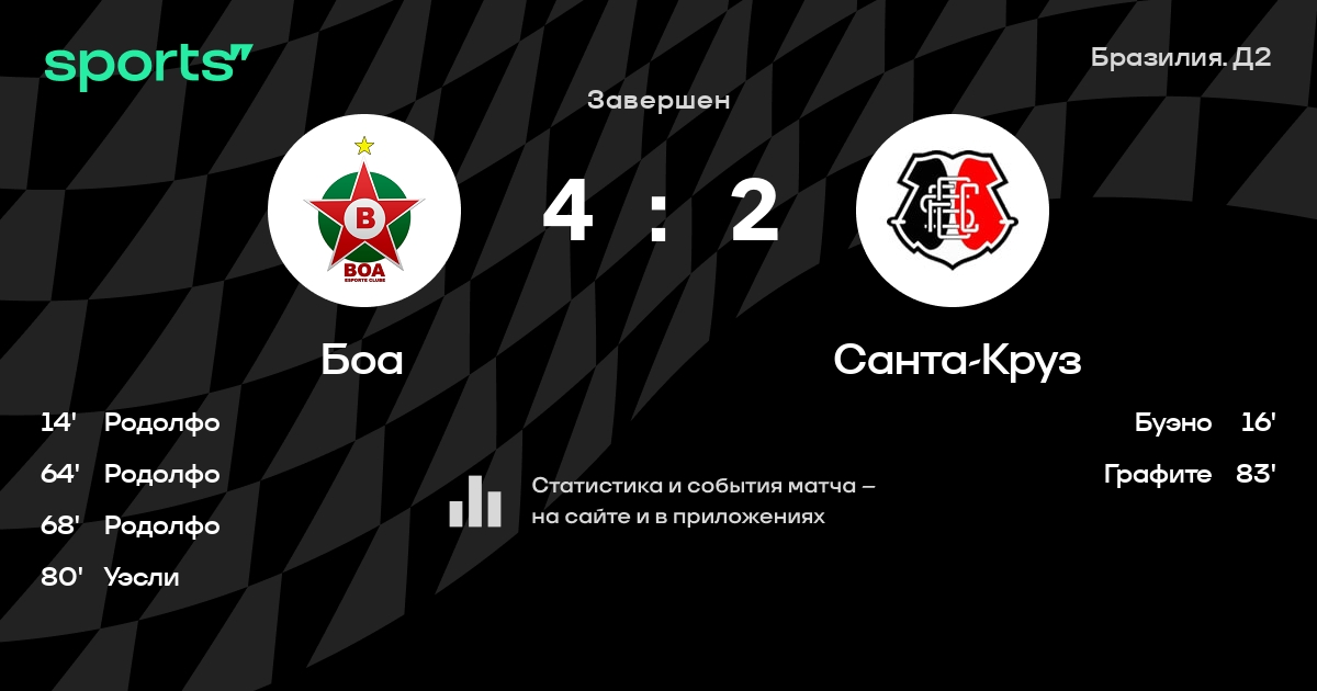 Фабрисио - Лима, Дуглас Ассис, Кайке, Жеандро - Алисон, Эскобар, Паулиньо Силва, Феллипе Матеус, Силва - РодолфоЗапасные: Даниэл Луиз, Игор, Игор, Жулио Сантос, Лукас Алмейда, Радамес, Жаир Жуниор, Андерсон, Казагранде, Жил, Уэсли