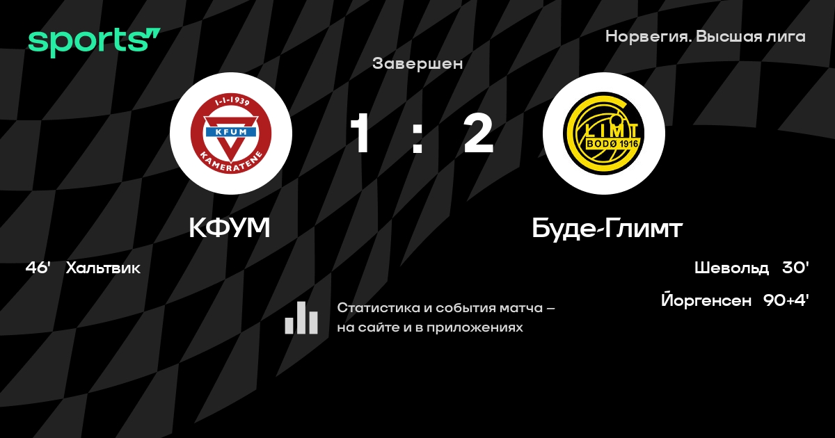 Результат прошлой игры в турнире «Высшая лига»: Бранн – КФУМ 1:1. После 28 туров КФУМ набирает 35 очков и занимает 10 место в турнире. Лучший бомбардир команды – D. Gyedu: он забил 6 в 27 матчах. КФУМ не может выиграть в 5 последних матчах в рамках турнира «Высшая лига». Буде-Глимт имеет в активе больше всех побед в турнире – 20. В 8 последних матчах в турнире «Высшая лига» КФУМ обязательно забивает. КФУМ пропускает в 10 последних матчах в турнире «Высшая лига». В последних 5 играх КФУМ забивает 5 голов. В последних 5 играх КФУМ пропускает 9 голов.