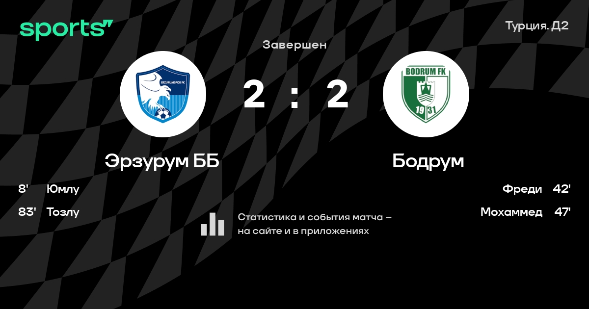 Результат прошлой игры в турнире «Первая лига»: Болуспор – Эрзурум ББ 2:0. После 16 туров Эрзурум ББ набирает 26 очков и занимает 8 место в турнире. Лучший бомбардир команды – Эрен Тозлу: он забил 8 в 16 матчах. В последних 5 играх Эрзурум ББ забивает 9 голов. В последних 5 играх Эрзурум ББ пропускает 6 голов.