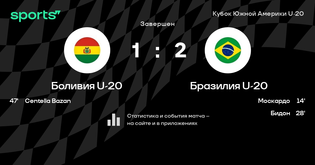| 1 | Бразилия U-20 | 5 | 4 | 1 | 0 | 9 | 2 | +7 | 13 | ||