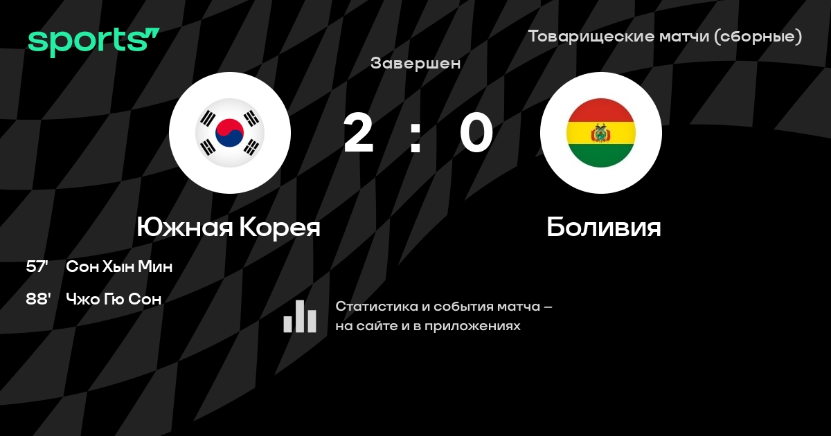 Товарищеский матч: шансы Южная Корея – Боливия победу в товарищеском матче