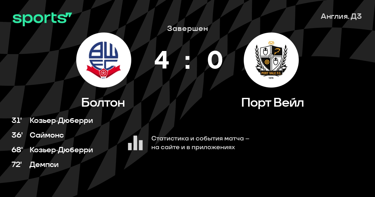 Болтон – Порт Вейл: Болтон не пропускает в 4 последних матчах против этого соперника