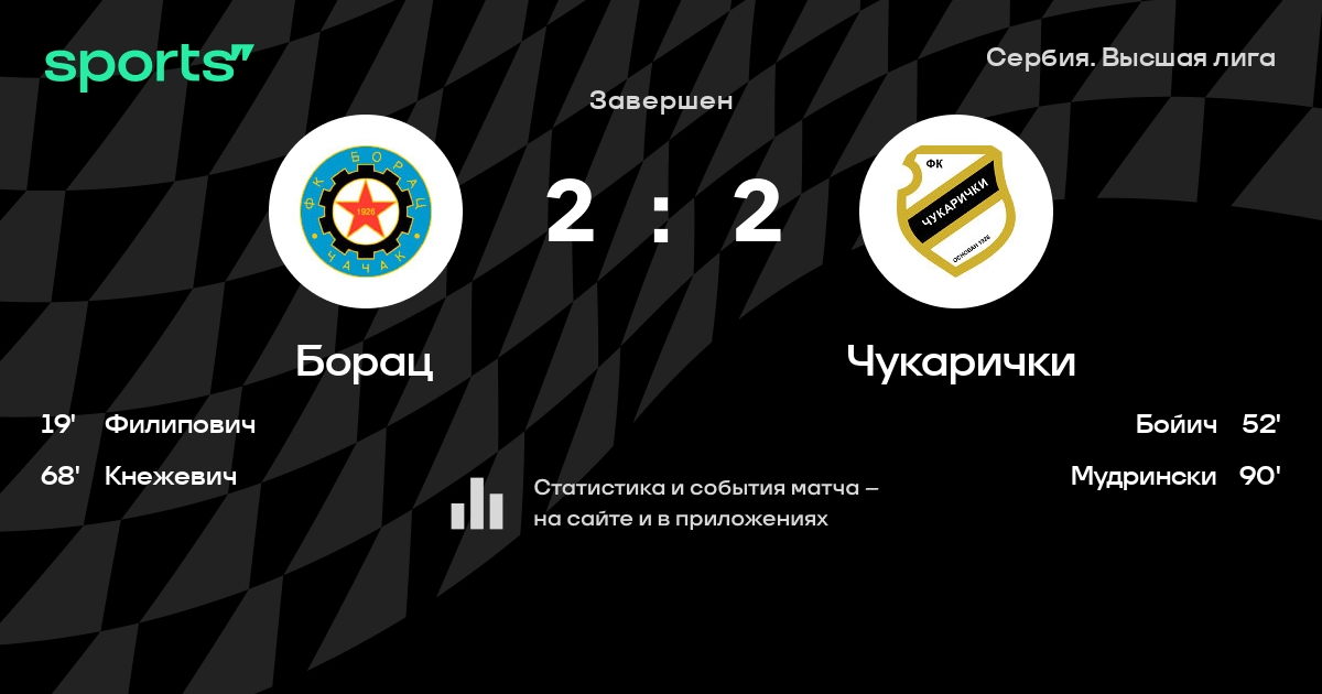 Борац – Чукарички: коэффициенты
