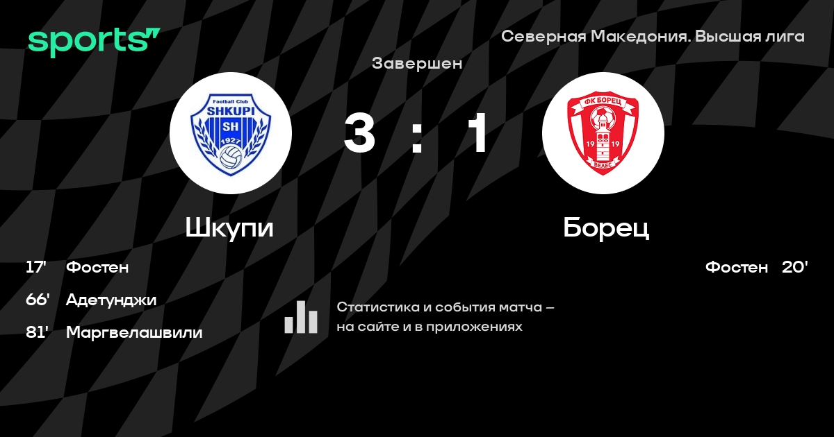 1 | Шкупи | 33 | 23 | 7 | 3 | 66 | 21 | +45 | 76 | ||