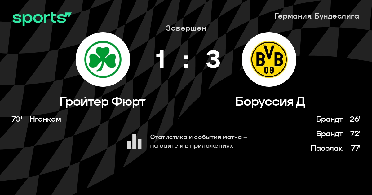 Гройтер – Боруссия Д: Боруссия Д побеждает в 5 последних очных матчах