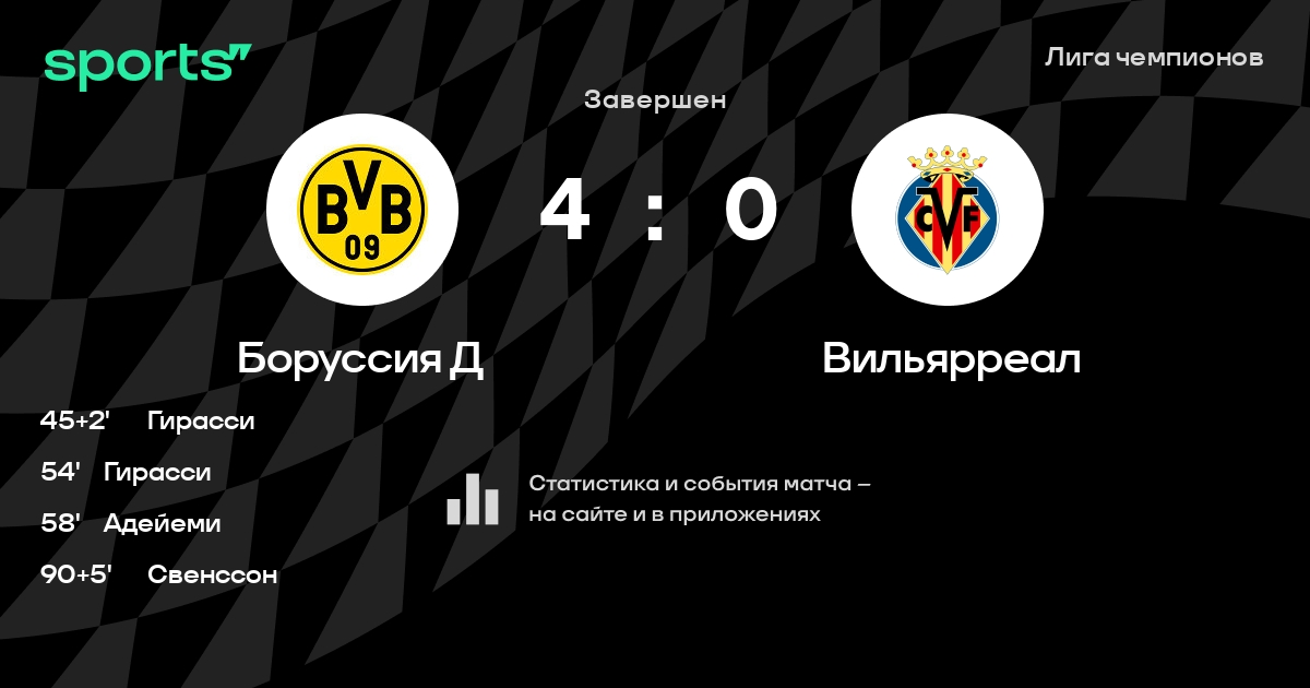ПрогнозБоруссия Д – Вильярреал: шансы на победу в матче 5-го тура Лиги чемпионов