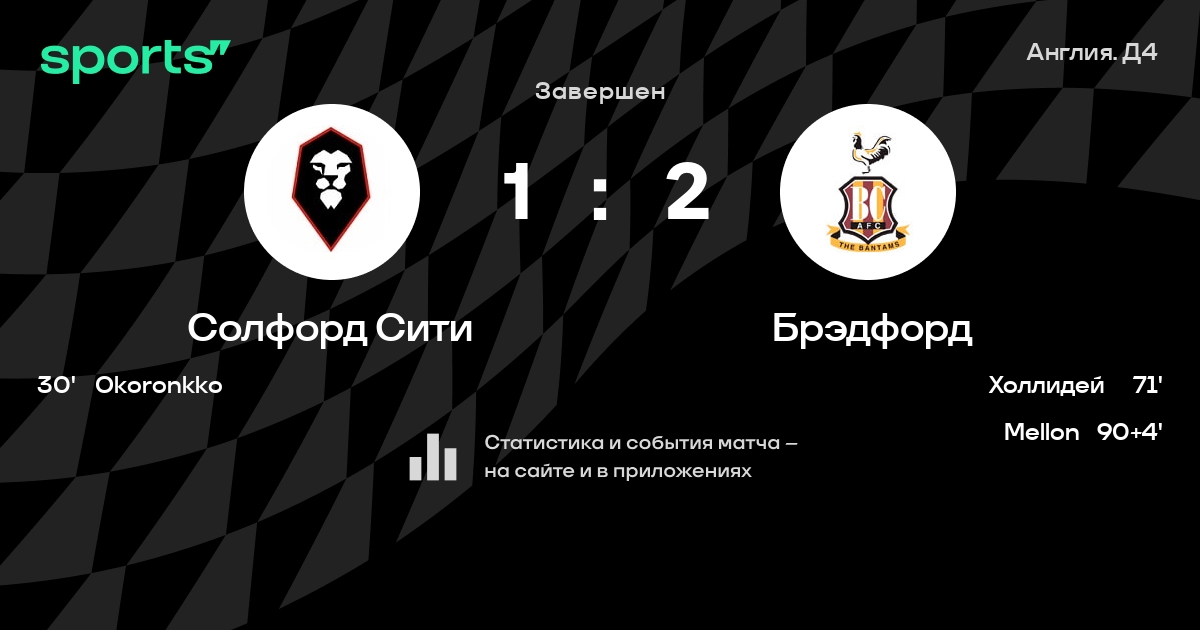 Солфорд Сити – Брэдфорд: Брэдфорд не проигрывает в 6 из 8 последних матчей против этого соперника