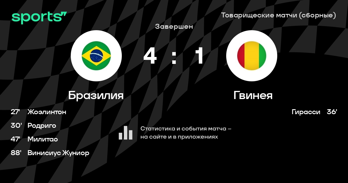Эдерсон - Айртон, Маркиньос, Милитао, Данило - Лукас Пакета, Каземиро, Жоэлинтон - Винисиус Жуниор, Ришарлисон, РодригоЗапасные: Алиссон, Уэвертон, Ренан, Рожер, Теллес, Вандерсон, Рафаэл Вейга, Бруно Гимараэс, Андре, Педро, Малком, Рони