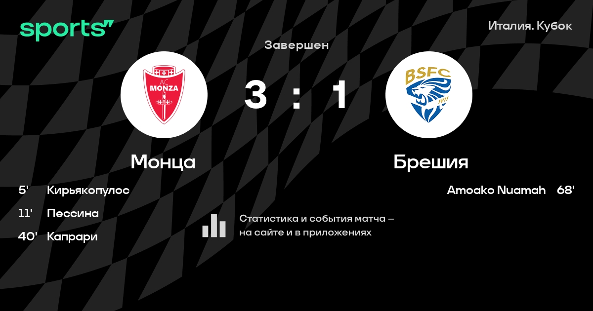 Кубок Италии. 2-й раунд. «Наполи» забил 5 мячей «Палермо», «Монца» победила «Брешию»