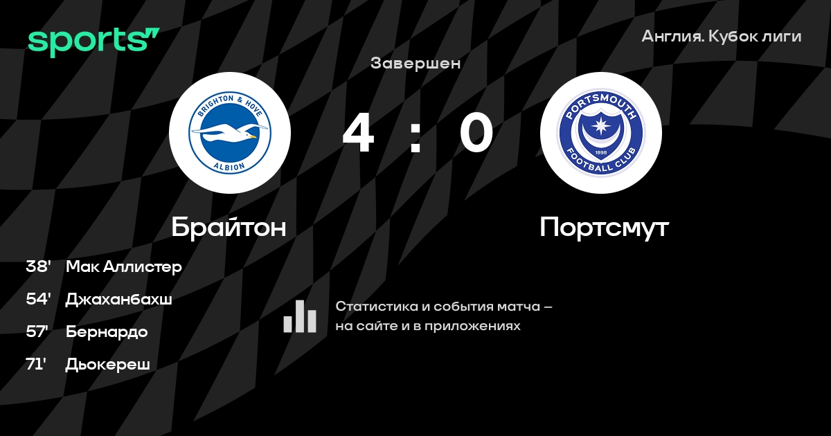 Кубок английской лиги. «Вулверхэмптон» проиграл «Сток Сити», «Брайтон» разгромил «Портсмут»