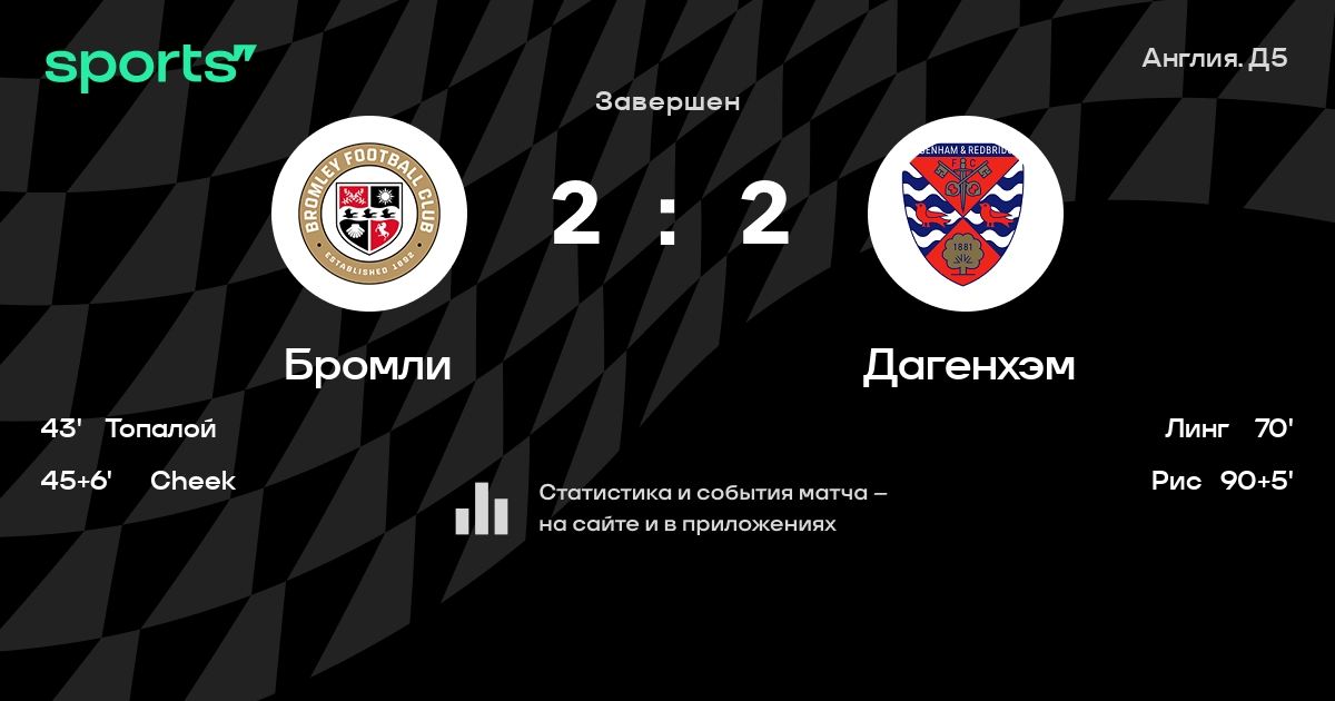 Дагенхэм не проигрывает в 8 из 10 последних матчей в гостях в турнире «Д5. Национальная лига»