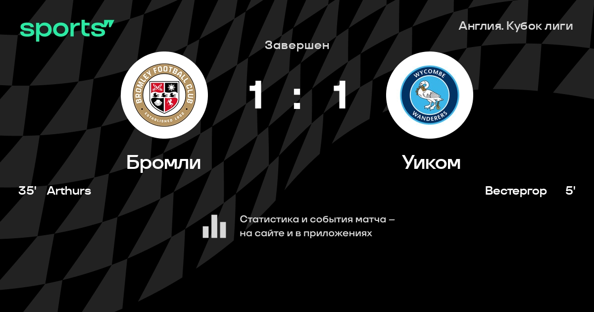 Уиком не проигрывает в 5 из 7 последних матчей в гостях в турнире «Кубок лиги»