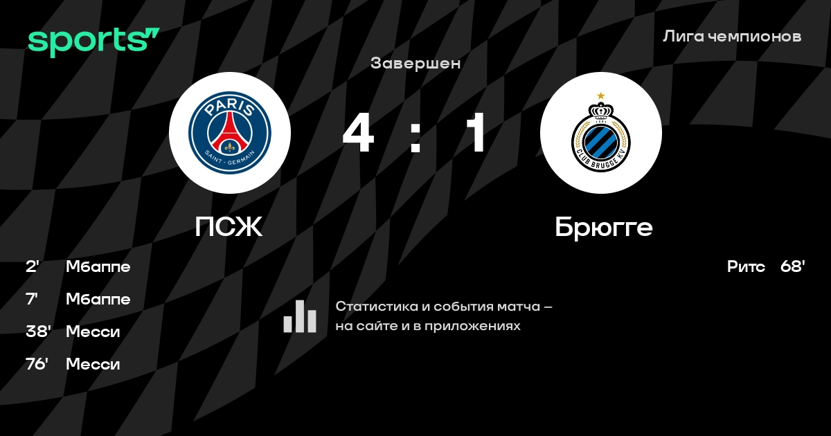 «Это самое яркое событие с начала века». «Брюгге» без проблем справился с тройкой Месси-Неймар-Мбаппе (1:1)