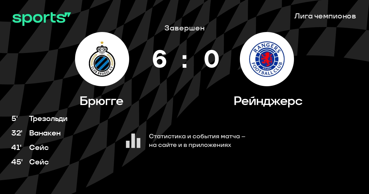 Лига Чемпионов: шансы «Брюгге» и «Рейнджерс» на победу в ответном матче раунда плей-офф