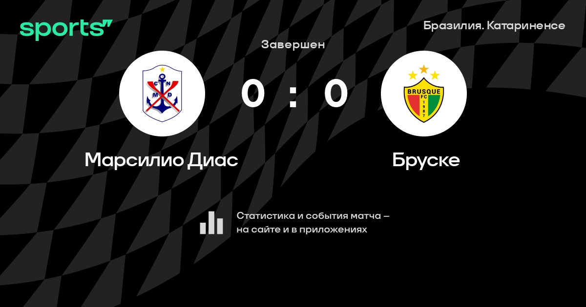 Результат прошлой игры в турнире «Лига Катариненсе»: Марсилио Диас – Бруске 0:0 (3:5). Марсилио Диас не может выиграть в 4 последних матчах в рамках турнира «Лига Катариненсе». В последних 5 играх Марсилио Диас забивает 3 голов. В последних 5 играх Марсилио Диас пропускает 8 голов.