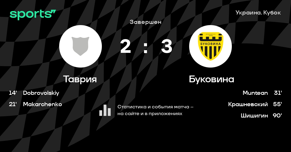 Таврия - Буковина: статистика матча