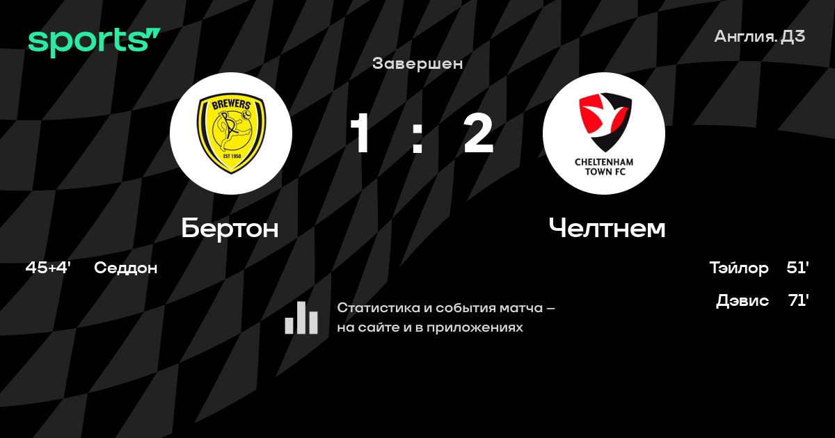 Бертон - Челтнем: положение в турнире
