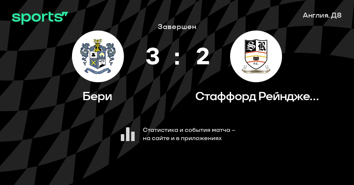 Результат прошлой игры в турнире «Д8. Нон-лиг Дивизион 1»: Этертон Кольериз – Стаффорд Рейнджерс 3:1. После 8 туров Стаффорд Рейнджерс набирает 12 очков и занимает 6 место в турнире. Стаффорд Рейнджерс пропускает в 3 последних матчах в турнире «Д8. Нон-лиг Дивизион 1». В последних 5 играх Стаффорд Рейнджерс забивает 7 голов. В последних 5 играх Стаффорд Рейнджерс пропускает 10 голов.