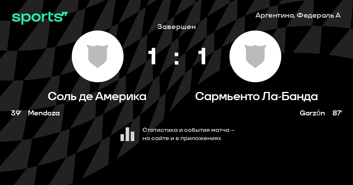 Результат прошлой игры в турнире «Торнео Федераль A»: Бартоломе Митре – Соль де Америка 1:1. После 15 туров Соль де Америка набирает 19 очков и занимает 6 место в турнире. Лучший бомбардир команды – J. Romero: он забил 4 в 14 матчах. В 6 последних матчах в турнире «Торнео Федераль A» Соль де Америка обязательно забивает. Соль де Америка пропускает в 3 последних матчах в турнире «Торнео Федераль A». В последних 5 играх Соль де Америка забивает 8 голов. В последних 5 играх Соль де Америка пропускает 6 голов.