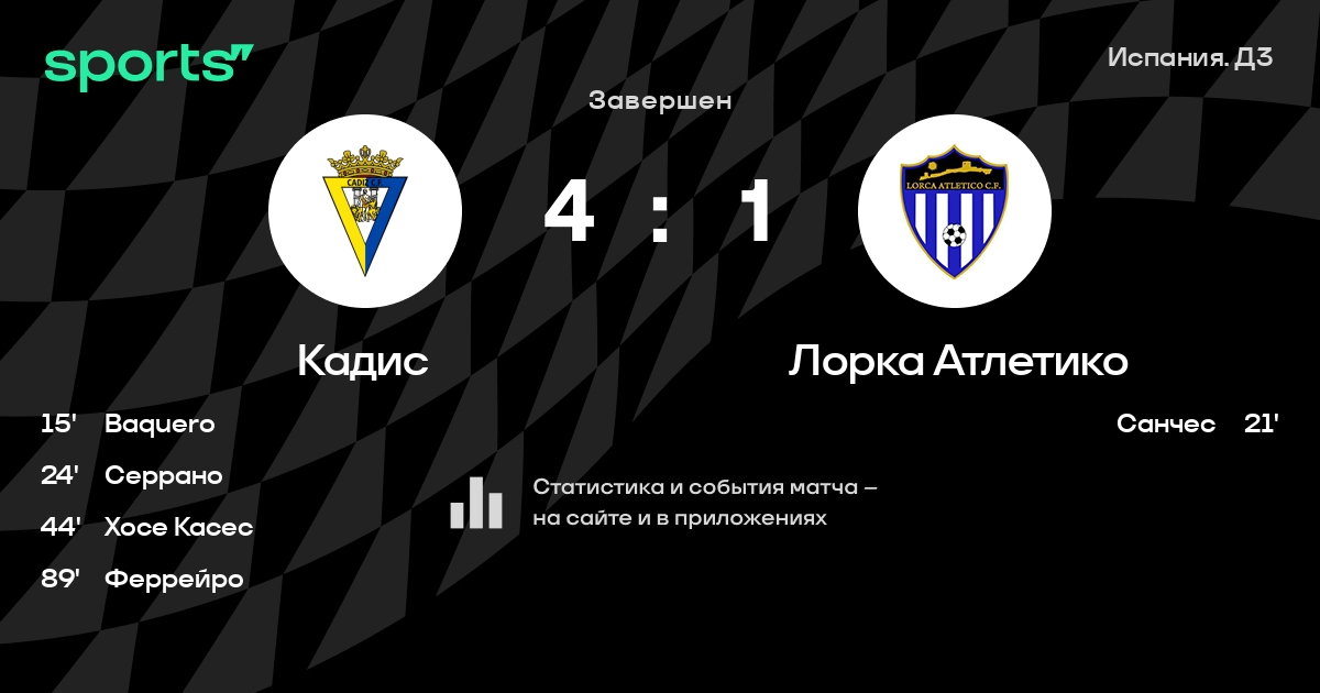 Кадис - Лорка Атлетико: статистика матча