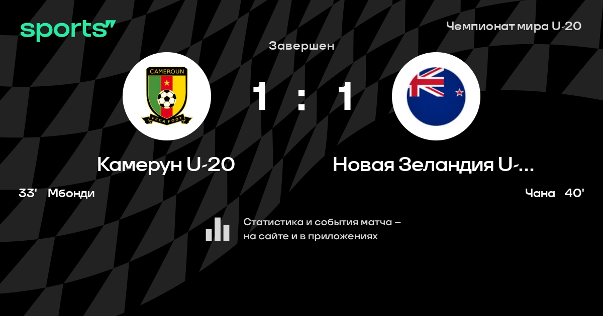 Трансляция Камерун U-20 - Новая Зеландия U-20