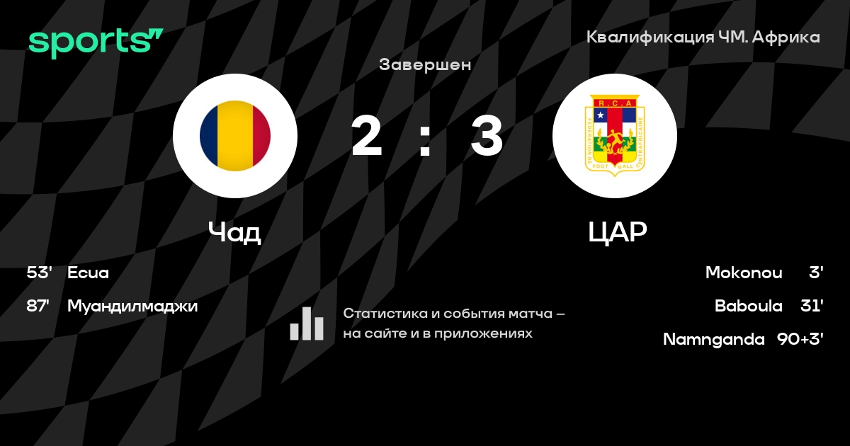 В последних 5 играх Чад забивает в среднем 0.60 гола за игру