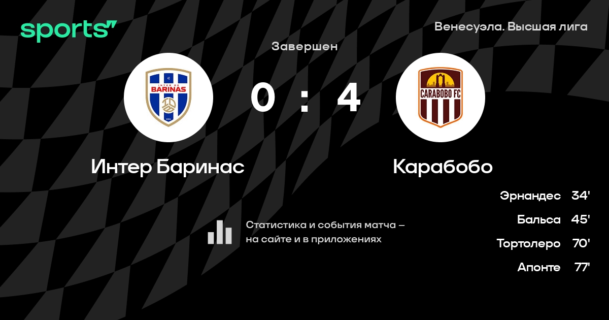 Интер Баринас – Карабобо: Карабобо забивает в 5 последних матчах против этого соперника