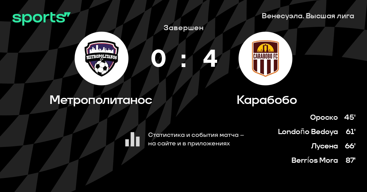 Результат прошлой игры в турнире «Примера»: Каракас – Метрополитанос 1:1. После 13 туров Метрополитанос набирает 17 очков и занимает 8 место в турнире. Лучший бомбардир команды – Гастон Понсе: он забил 4 в 10 матчах. Метрополитанос не может выиграть в 4 последних матчах в рамках турнира «Примера». Метрополитанос пропускает в 4 последних матчах в турнире «Примера». В последних 5 играх Метрополитанос забивает 5 голов. В последних 5 играх Метрополитанос пропускает 6 голов.