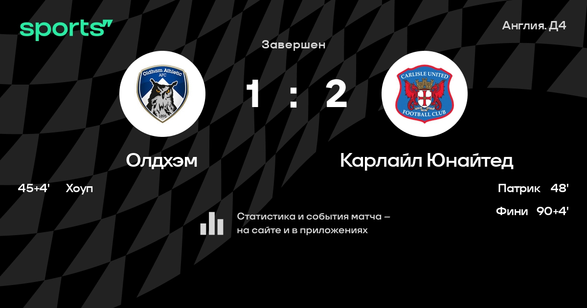 Олдхэм – Карлайл Юнайтед: Карлайл Юнайтед не проигрывает в 6 из 7 последних матчей против этого соперника в турнире «Англия. Вторая Лига»