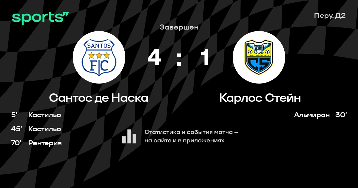 Сантос де Наска – Карлос Стейн: Карлос Стейн забивает в 3 последних матчах против этого соперника