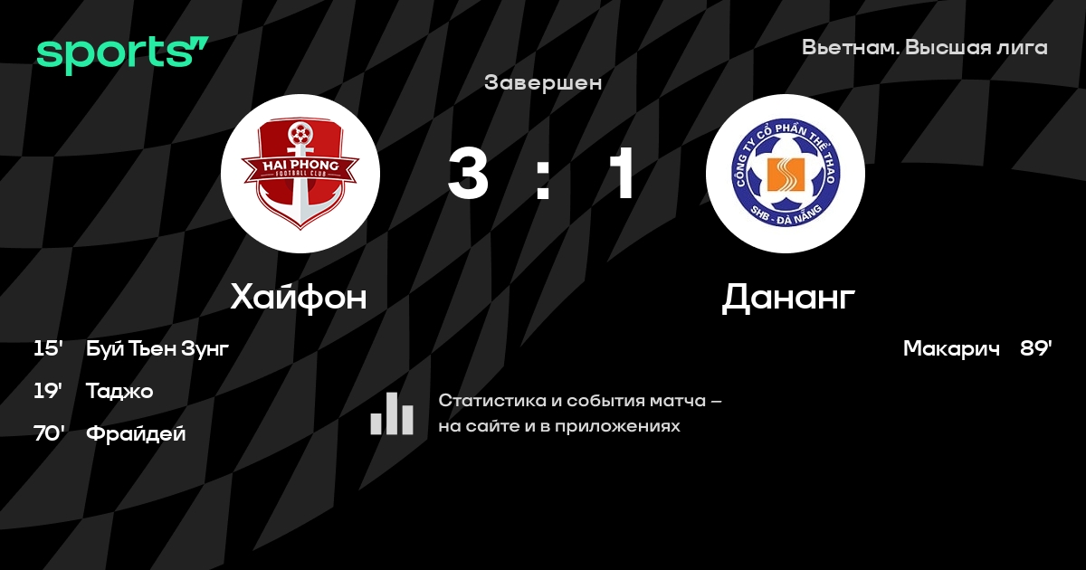 Результат прошлой игры в турнире «Высшая лига»: Биньзыонг – Хайфон 2:1. После 10 туров Хайфон набирает 17 очков и занимает 4 место в турнире. Лучший бомбардир команды – Фред Фрайдей: он забил 6 в 9 матчах. В 10 последних матчах в турнире «Высшая лига» Хайфон обязательно забивает. Хайфон пропускает в 3 последних матчах в турнире «Высшая лига». В последних 5 играх Хайфон забивает 10 голов. В последних 5 играх Хайфон пропускает 6 голов.