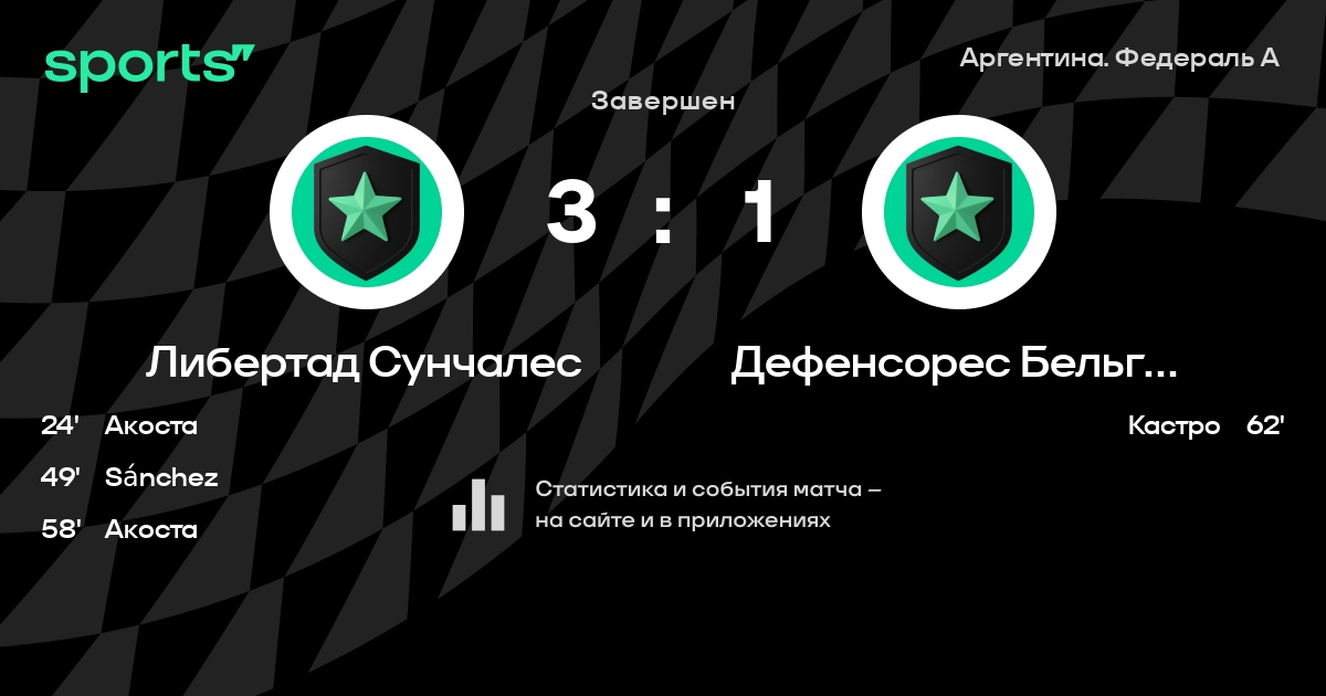 Либертад Сунчалес - Дефенсорес Бельграно ВР: статистика матча