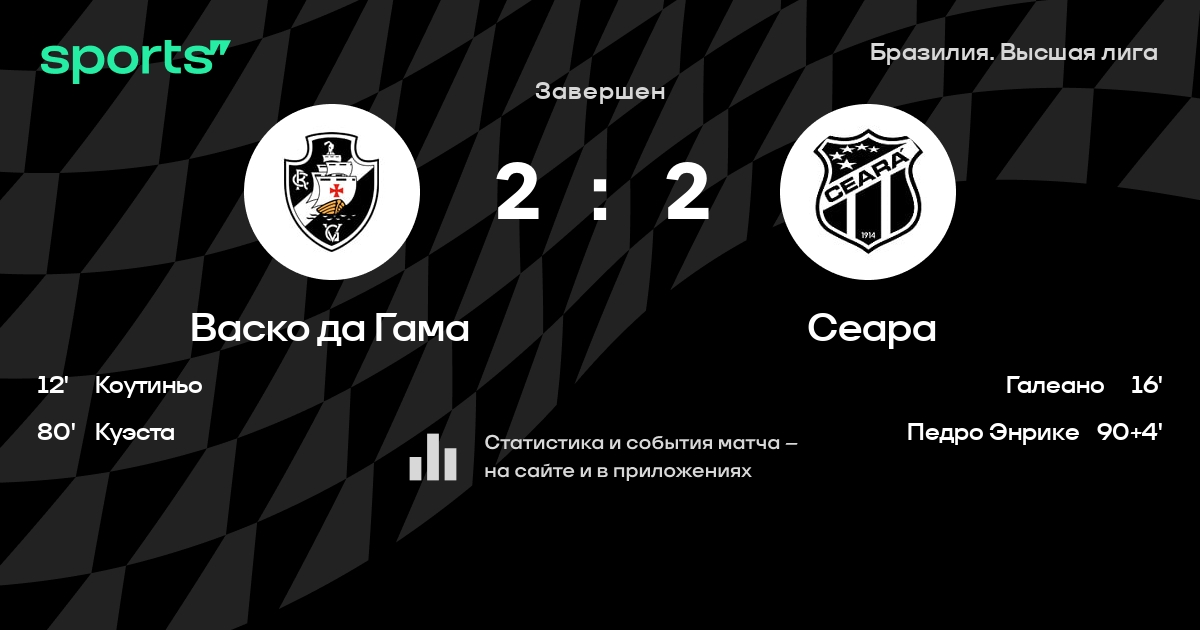 Васко да Гама – Сеара: Васко да Гама забивает в 5 последних матчах против этого соперника
