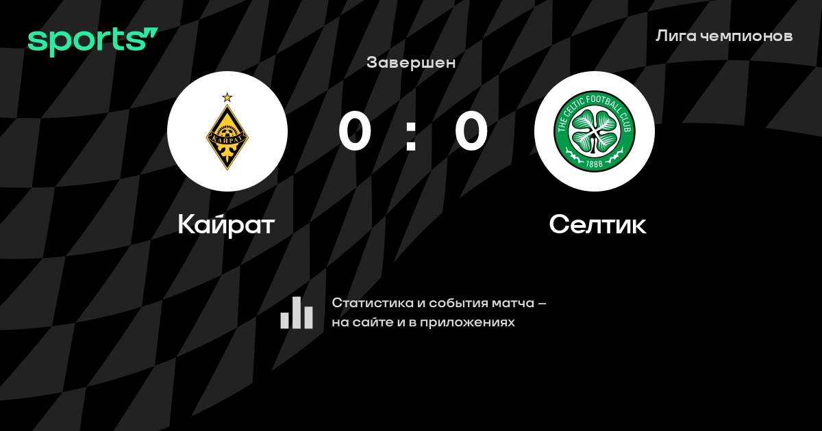 Результат прошлой игры в турнире «Лига чемпионов»: Селтик – Кайрат 0:0. Кайрат не проигрывает в 4 последних матчах в рамках турнира «Лига чемпионов». В последних 5 играх Кайрат забивает 4 голов. В последних 5 играх Кайрат пропускает 4 голов.